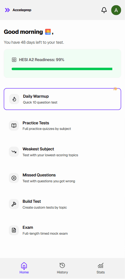"AccelPrep transformed how I study. The daily warmups kept me motivated, and seeing my progress on the dashboard made all the difference. I went from struggling to scoring in the top percentile."